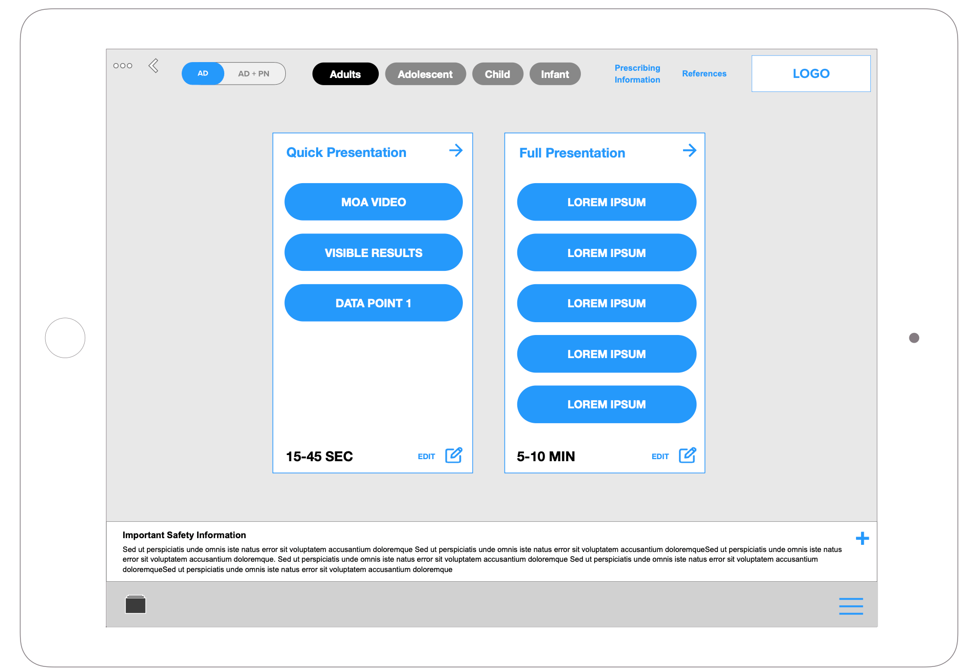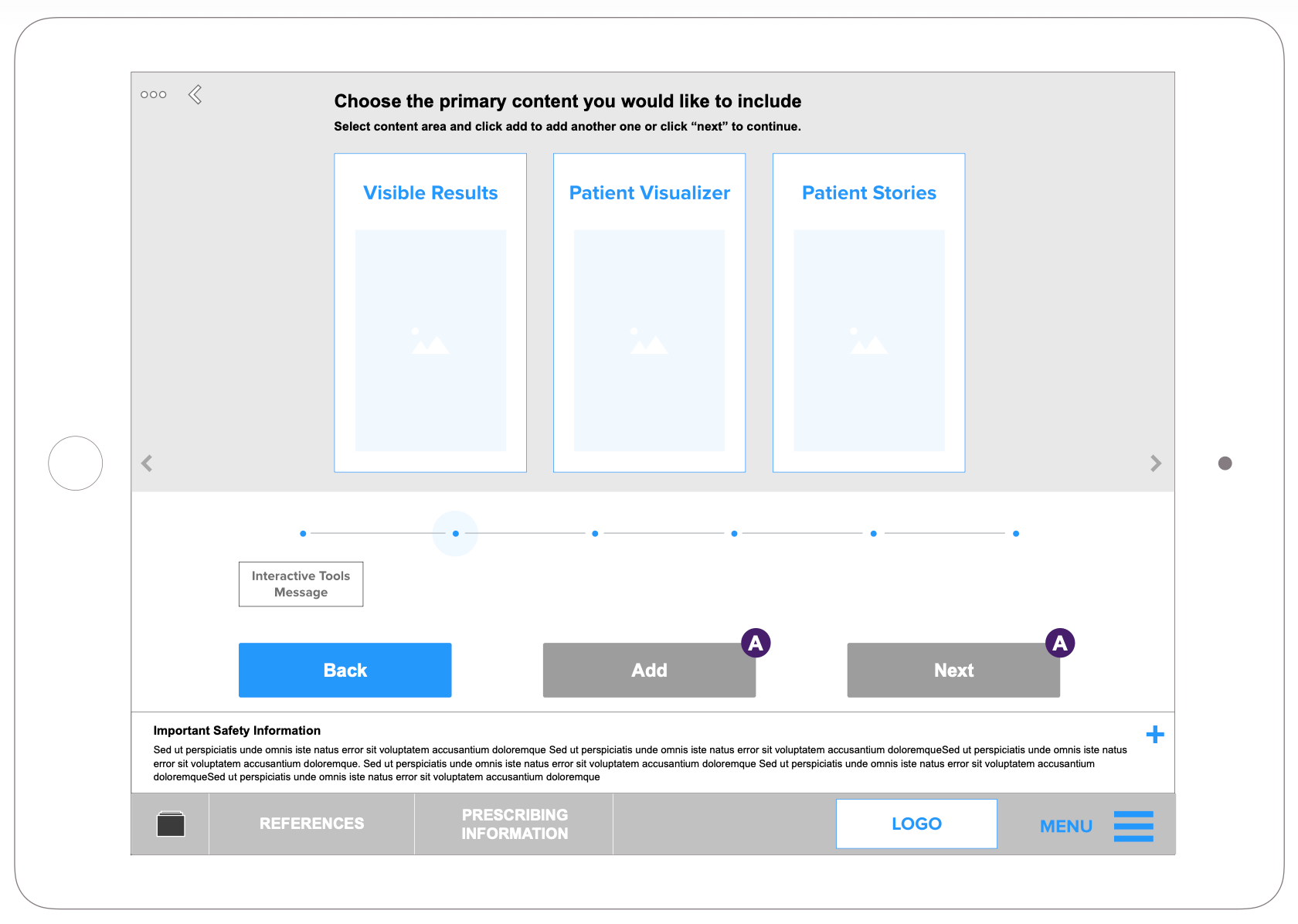 The design challenge was to create a modular system that could adapt to time, context, and audience, while supporting both the rep and the HCP as co-participants in the conversation. How might we design an IVA that:
